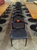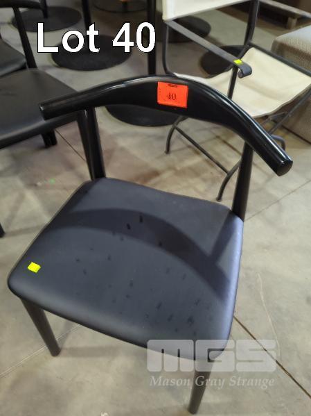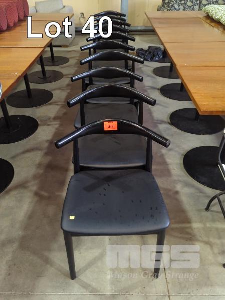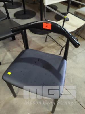 10 X DINING CHAIRS - TIMBER FRAME, TUBULAR LEGS, PADDED VINYL SEAT, WIDE ARCHED BACKREST, ALL IN BLACK.