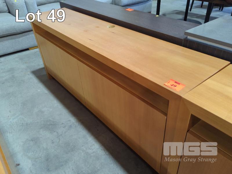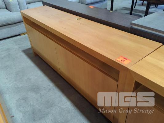 TWO-DOOR ENTERTAINMENT UNIT IN WOODGRAIN TIMBER LAMINATE - COLOUR "RED OAK". 170 X 38 X 70.5 CM (W D H).