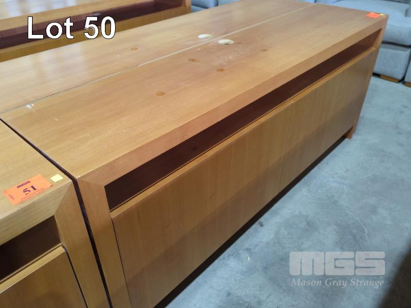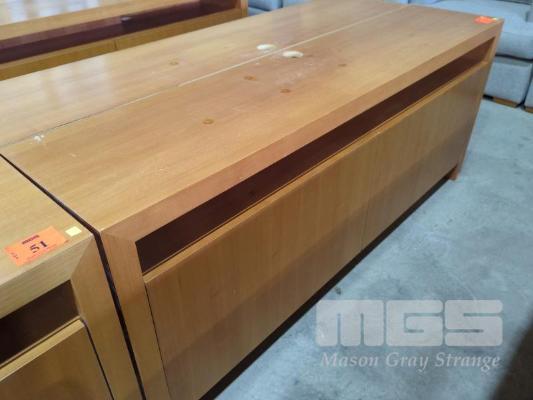 TWO-DOOR ENTERTAINMENT UNIT IN WOODGRAIN TIMBER LAMINATE - COLOUR "RED OAK". 170 X 38 X 70.5 CM (W D H).