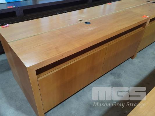 TWO-DOOR ENTERTAINMENT UNIT IN WOODGRAIN TIMBER LAMINATE - COLOUR "RED OAK". 170 X 38 X 70.5 CM (W D H).
