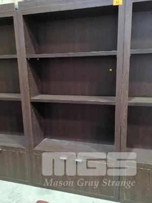 TWO-DOOR, THREE-SHELF WALL UNIT IN WOODGRAIN TIMBER LAMINATE WITH KICKBOARD/BASE - STAINLESS STEEL LOOK DOOR HANDLES, COLOUR "BLACK ASH". 100 X 30 X 193 CM (W D H).
