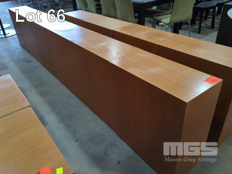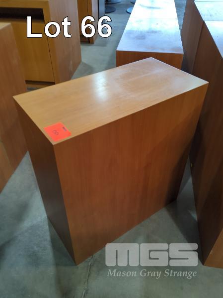6 X SOLID CUBE STANDS IN WOODGRAIN TIMBER LAMINATE - COLOUR "RED OAK". 60 X 30 X 65 CM.