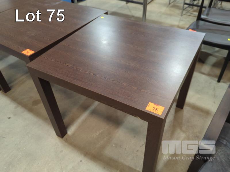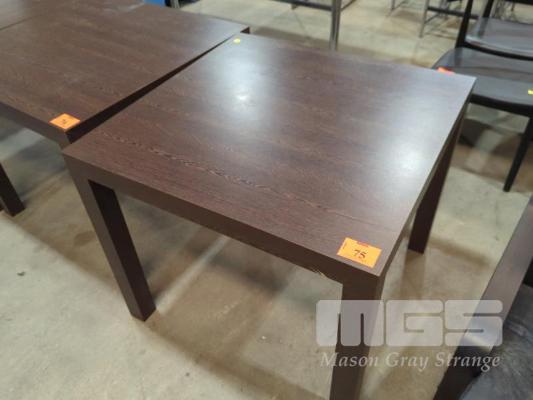 WOODGRAIN TIMBER LAMINATE SQUARE TABLE - COLOUR "BLACK ASH". 85 X 85 X 74 CM (W D H).