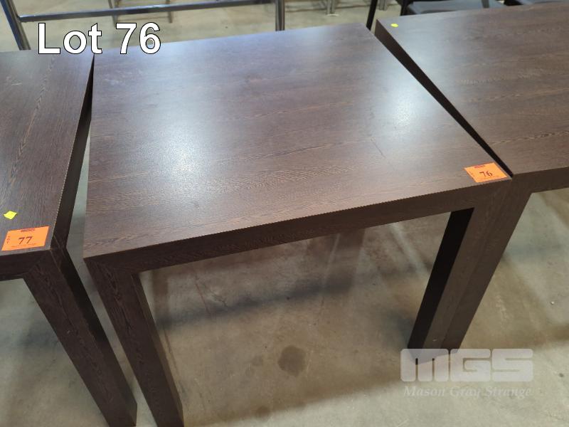 WOODGRAIN TIMBER LAMINATE SQUARE TABLE - COLOUR "BLACK ASH". 85 X 85 X 74 CM (W D H).