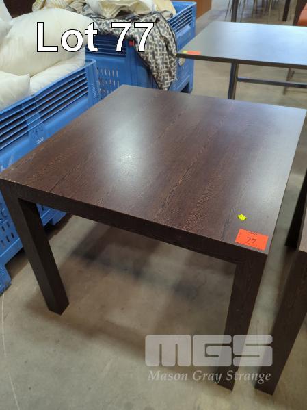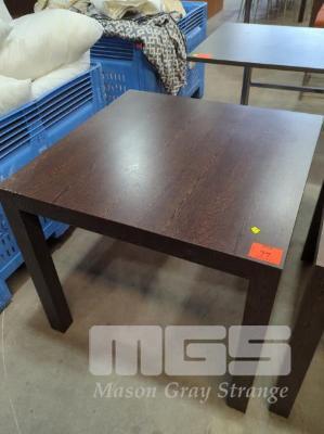 WOODGRAIN TIMBER LAMINATE SQUARE TABLE - COLOUR "BLACK ASH". 85 X 85 X 74 CM (W D H).