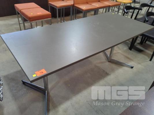 LAMINATE TABLE - COLOUR OFF-GREY-BROWN, CHROME FRAME & LEGS. 180 X 80 X 76 CM (W D H).
