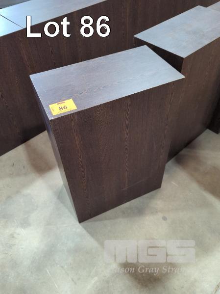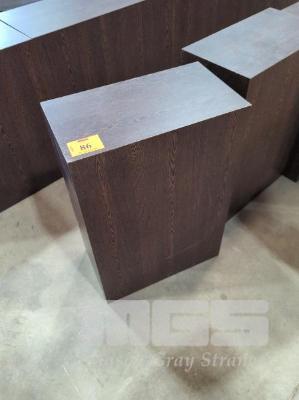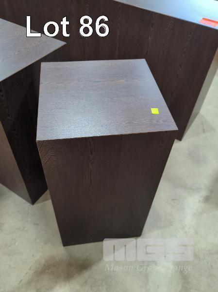 8 X SOLID CUBE STANDS IN WOODGRAIN TIMBER LAMINATE - COLOUR "BLACK ASH". 2 @ 66 X 45 X 25 CM.
