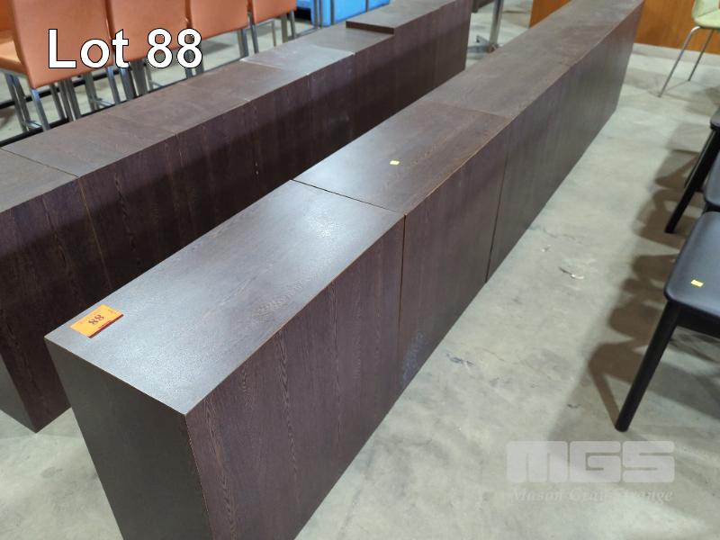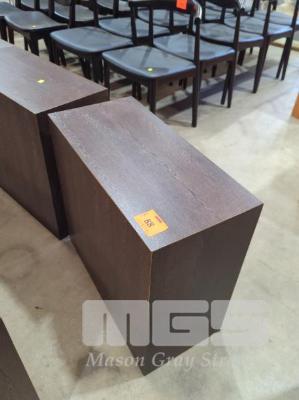 5 X SOLID CUBE STANDS IN WOODGRAIN TIMBER LAMINATE - COLOUR "BLACK ASH". 68 X 62 X 32 CM.