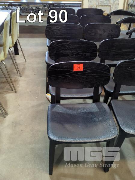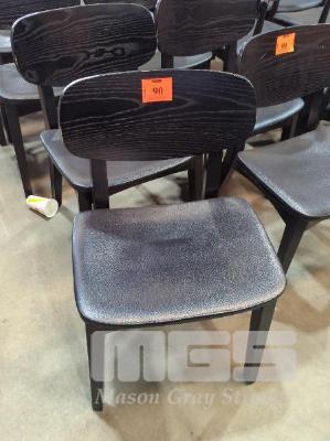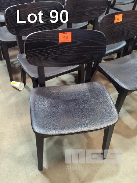 5 X DINING CHAIRS - TIMBER FRAME, TAPERED SQUARE LEGS, CURVED PADDED LEATHER LOOK SEAT, BENTWOOD BACKREST, ALL IN BLACK.