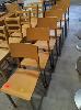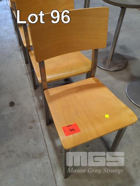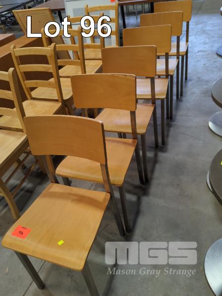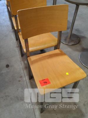 6 X LAMINATED PLYWOOD DINING CHAIRS - CURVED SEAT & BACKREST, STEEL FRAME & LEGS.