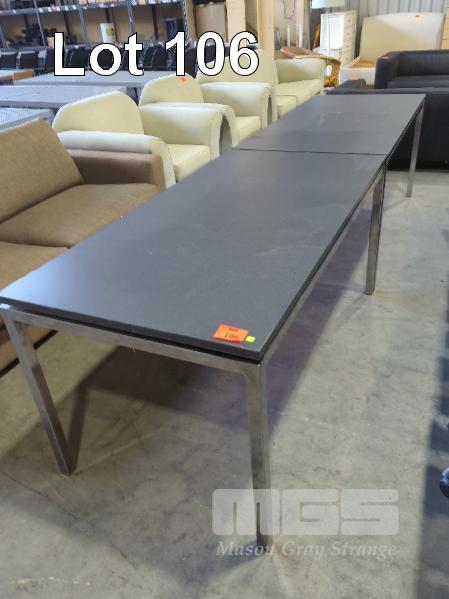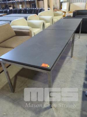 2 X EXECUTIVE CONFERENCE TABLES - SQUARE TUBE CHROME FRAME & LEGS, FLOATING LAMINATED TOPS IN TEXTURED GREY. 160 X 80 X 74 CM (W D H). * SOME IMPERFECTIONS *