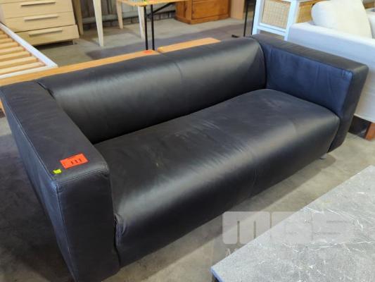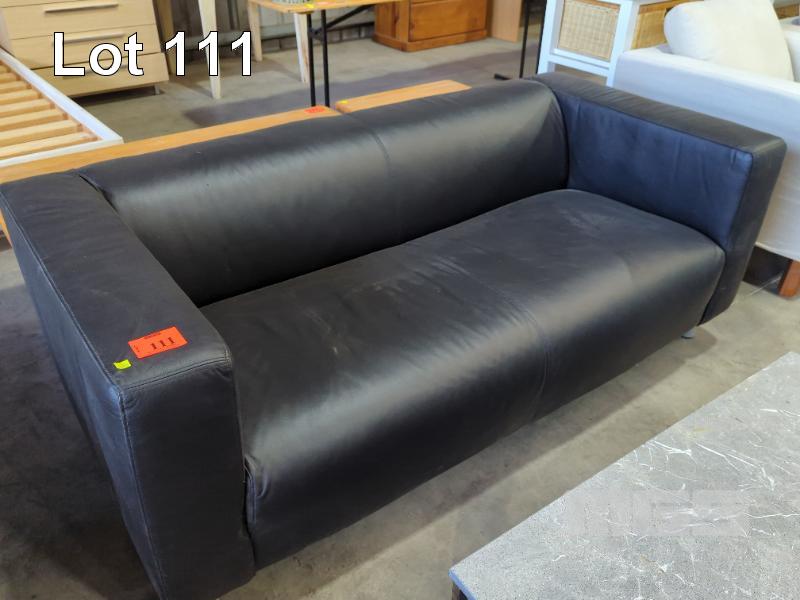 TWO SEATER LOUNGE - FAUX LEATHER IN BLACK, STITCHED WIDE TRACK ARMS & STITCHED TIGHT SEAT.