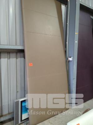 ABSOLUTELY ENORMOUS BED HEAD - FAUX LEATHER - COLOUR DARK TAN GREY, DOUBLE-STITCHED PANEL HIGHLIGHTS. 300 X 125 X 8 CM APPROX. (W H D). SUIT SUPER CAESAR BED.