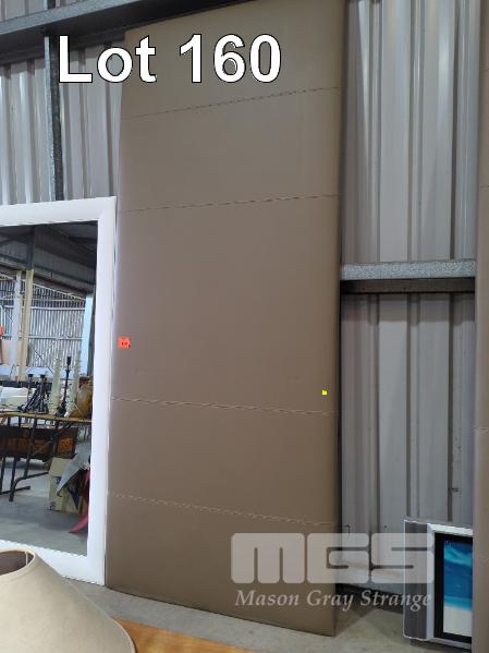 ABSOLUTELY ENORMOUS BED HEAD - FAUX LEATHER - COLOUR DARK TAN GREY, DOUBLE-STITCHED PANEL HIGHLIGHTS. 300 X 125 X 8 CM APPROX. (W H D). SUIT SUPER CAESAR BED.