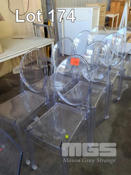 8 X TRANSPARENT STACKABLE CHAIRS.