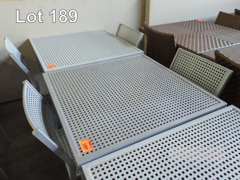 OUTDOOR TABLE - COATED ALUMINIUM, MESH CONSTRUCTION, LIGHT GREY COLOUR. 91 X 91 X 70 CM (W D H) 2 X MATCHING CHAIRS.