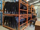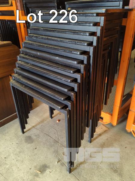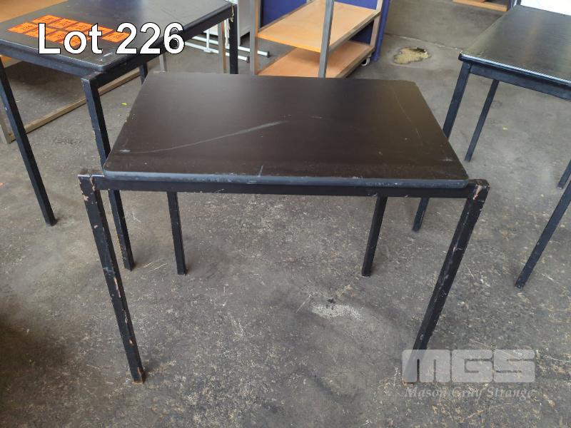 60 X STACKABLE EXAM DESKS - STEEL FRAME, LAMINATE TOPS ALL IN BLACK.