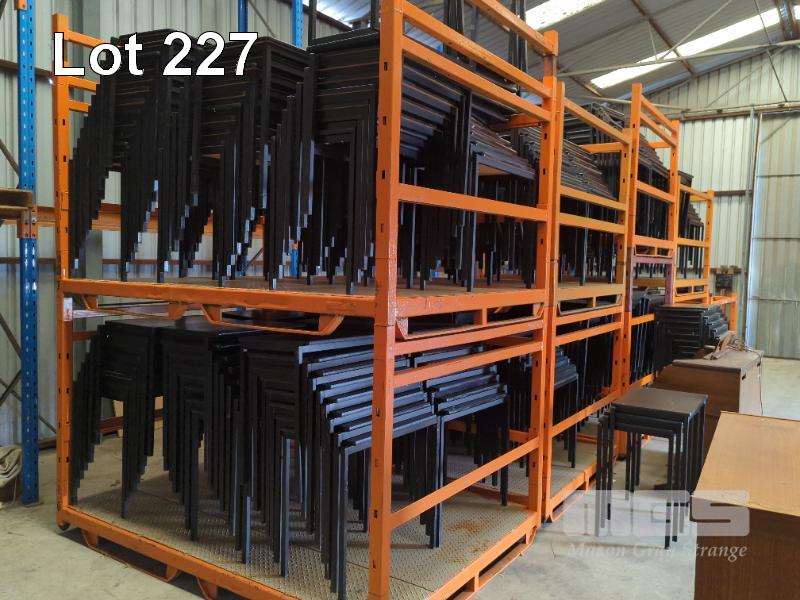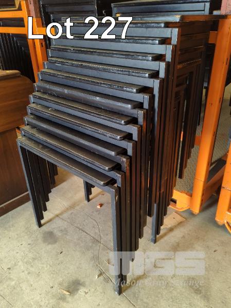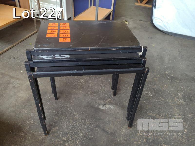 60 X STACKABLE EXAM DESKS - STEEL FRAME, LAMINATE TOPS ALL IN BLACK.