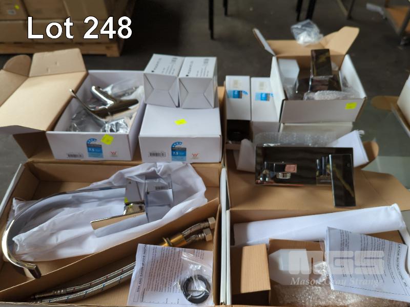 2 x BASIN MIXER TAPS, CHROME FINISH, 1 x HIGH RISE MIXER TAP, WATER MARK, CHROME FINISH, 2 x SHOWER HEADS WITH MIXER TAPS & 1 x INTERNAL WALL MOUNT MIXER TAP & SPOUT, CHROME