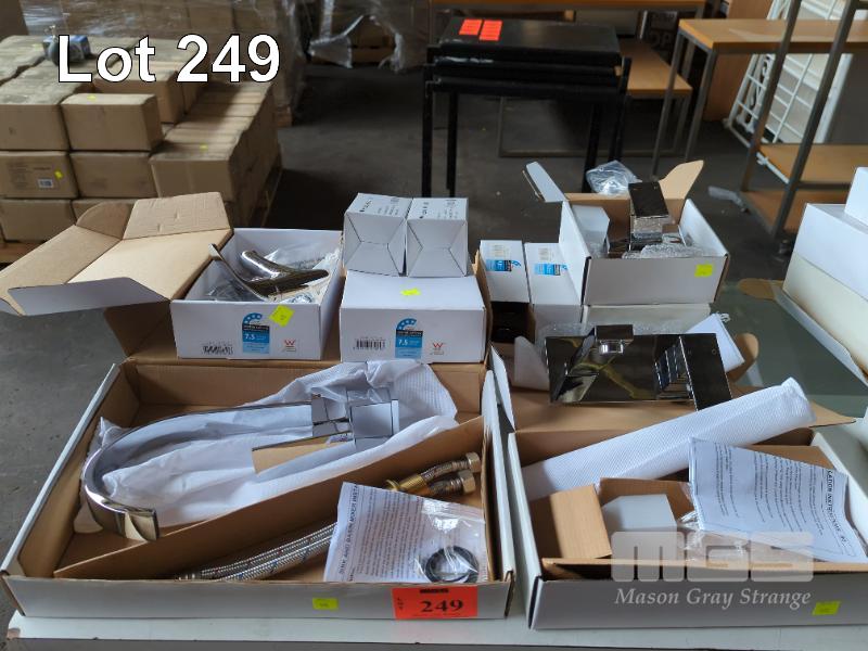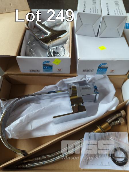 2 x BASIN MIXER TAPS, CHROME FINISH, 1 x HIGH RISE MIXER TAP, WATER MARK, CHROME FINISH, 2 x SHOWER HEADS WITH MIXER TAPS & 1 x INTERNAL WALL MOUNT MIXER TAP & SPOUT, CHROME