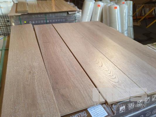 LAMITEC TIMBER LAMINATE FLOORING COLOUR: GOLDEN OAK, TEXTURE SURFACE PRESSED V-GROOVE 1215 x 197 x 12mm 7 PIECES/CARTON AREA/CARTON: 1.675sqm PATTERN CODE: SN17302-24 10 x CARTONS