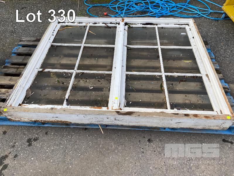 FENCE PALINGS, PERMAPINE, TIMBER FRAME WINDOW & GALV RAINWATER TANK (RUSTY)