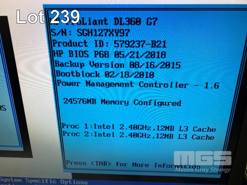 RACKMOUNT SERVER, HP PROLIANT DL360 G7, 1U, 2 x XEON E5620 @ 2.4GHz, 24GB ECC DDR3 RAM, 8 x 146GB SAS HDD, 2 x PSU (NO CABLES) S/N:SGH127XY97