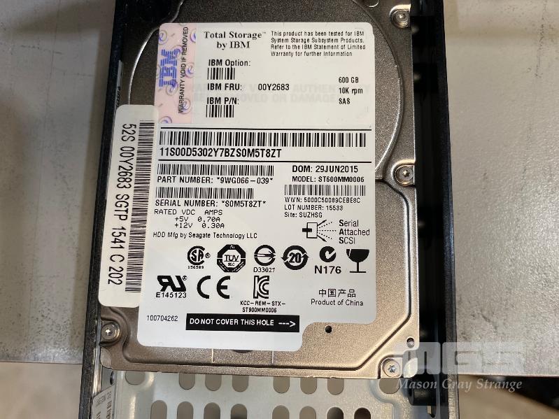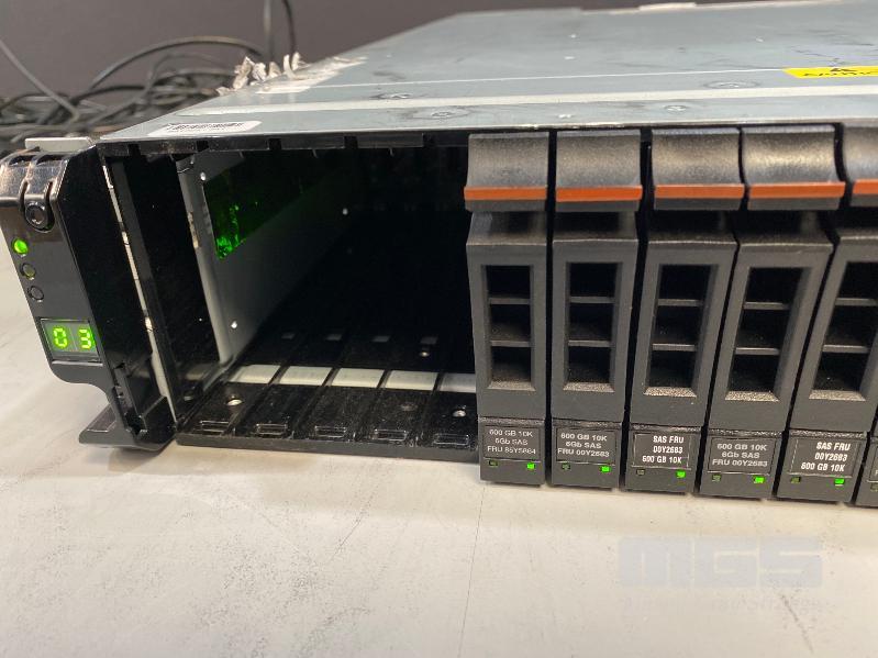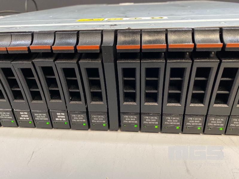 RACKMOUNT STORAGE ARRAY, IBM STORWIZE V7000, 2076-224, 2U, 13 x 1TB SAS HDD, 5 x 600GB SAS HDD, 2 x SAS CONTROLLERS, 2 x PSU (NO CABLES) S/N:78N2MR9