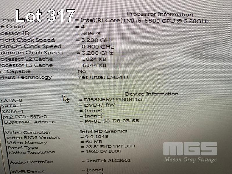 ALL-IN-ONE PC, DELL OPTIPLEX 7440, CORE i5 6500 (6TH GEN) @ 3.2GHz, 8GB DDR4 RAM, 256GB SSD, DVD-RW, INBUILT 23.8" FHD WIDESCREEN (1920x1080), INTEL HD VIDEO, WEBCAM, 8 x USB, WINDOWS 10 HOME INSTALLED, KEYBOARD & MOUSE S/N:5LM0TF2