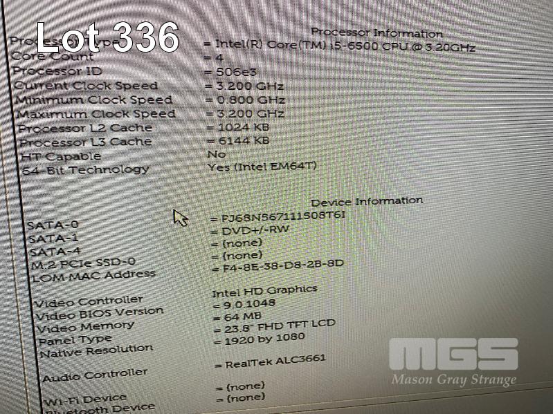 ALL-IN-ONE PC, DELL OPTIPLEX 7440, CORE i5 6500 (6TH GEN) @ 3.2GHz, 8GB DDR4 RAM, 256GB SSD, DVD-RW, INBUILT 23.8" FHD WIDESCREEN (1920x1080), INTEL HD VIDEO, WEBCAM, 8 x USB, WINDOWS 10 HOME INSTALLED, KEYBOARD & MOUSE S/N:5LKXSF2