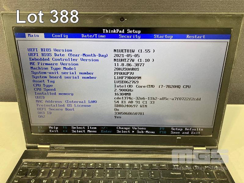 LAPTOP, LENOVO THINKPAD P51 MOBILE WORKSTATION, TYPE 20HJ, CORE i7 7820HQ (7TH GEN) @ 2.9GHz, 16GB DDR4 RAM, 256GB NVMe M.2 SSD, 15.6" WIDESCREEN (1920x1080), 4GB NVIDIA QUADRO M2200 VIDEO, Wi-Fi, BLUETOOTH, WINDOWS 10 PRO INSTALLED & POWER SUPPLY (NOTE: MARKS ON SCREEN, CRACK LINE ON CASING) S/N:PF0UGP7V