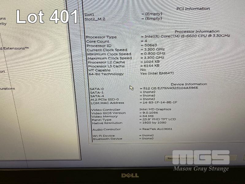 ALL-IN-ONE PC, DELL OPTIPLEX 7450, CORE i5 6600 (6TH GEN) @ 3.3GHz, 16GB DDR4 RAM, 512GB SSD, INBUILT 23.8" FHD WIDESCREEN (1920x1080), INTEL HD VIDEO, WEBCAM, 7 x USB, 1 x USB-C, WINDOWS 10 HOME INSTALLED (NO KEYBOARD, NO MOUSE) (NOTE: LINE ON SCREEN) S/N:49J1DK2