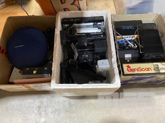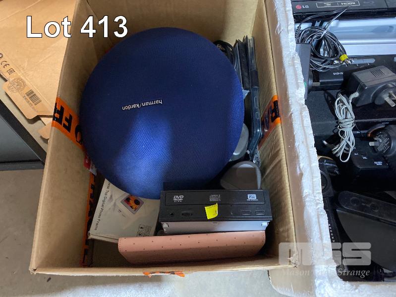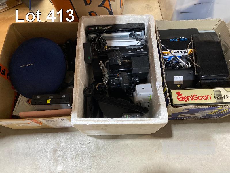 3 x BOXES ASST SUNDRY ITEMS INC. SPEAKERS, A/V EQUIPMENT, TV ANTENNAS ETC