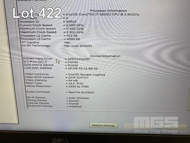LAPTOP, DELL LATITUDE E7470, CORE i7 6600U (6TH GEN) @ 2.6GHz, 16GB DDR4 RAM, 512GB M.2 SSD, 14" WIDESCREEN (1920x1080), INTEL SKYLAKE GRAPHICS, Wi-Fi, BLUETOOTH, WINDOWS 10 HOME INSTALLED, DOCKING STATION & POWER SUPPLY S/N:BZMSBG2