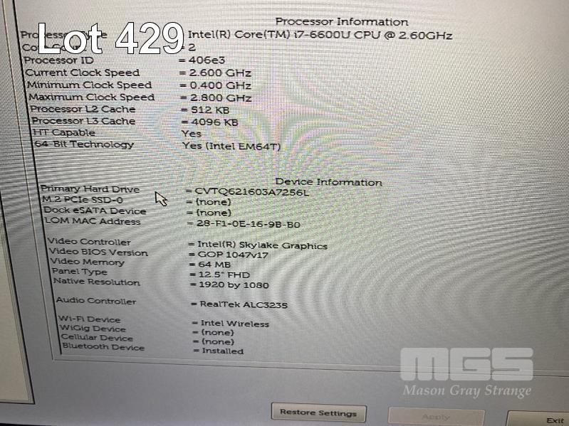LAPTOP, DELL LATITUDE E7270, CORE i7 6600U (6TH GEN) @ 2.6GHz, 8GB DDR4 RAM, 256GB SSD, 12.5" WIDESCREEN (1920x1080), INTEL SKYLAKE GRAPHICS, Wi-Fi, BLUETOOTH, WINDOWS 10 HOME INSTALLED & POWER SUPPLY S/N:B6R3JC2
