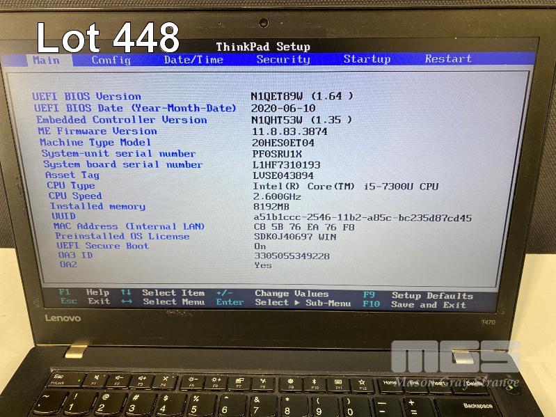 LAPTOP, LENOVO THINKPAD T470, TYPE 20HE, CORE i5 7300U (7TH GEN) @ 2.6GHz, 8GB DDR4 RAM, 256GB NVMe M.2 SSD, 14" WIDESCREEN (1366x768), INTEL HD VIDEO, Wi-Fi, BLUETOOTH, WINDOWS 10 PRO INSTALLED & POWER SUPPLY (NOTE: MINOR MARKS ON SCREEN) S/N:PF0SRU1X