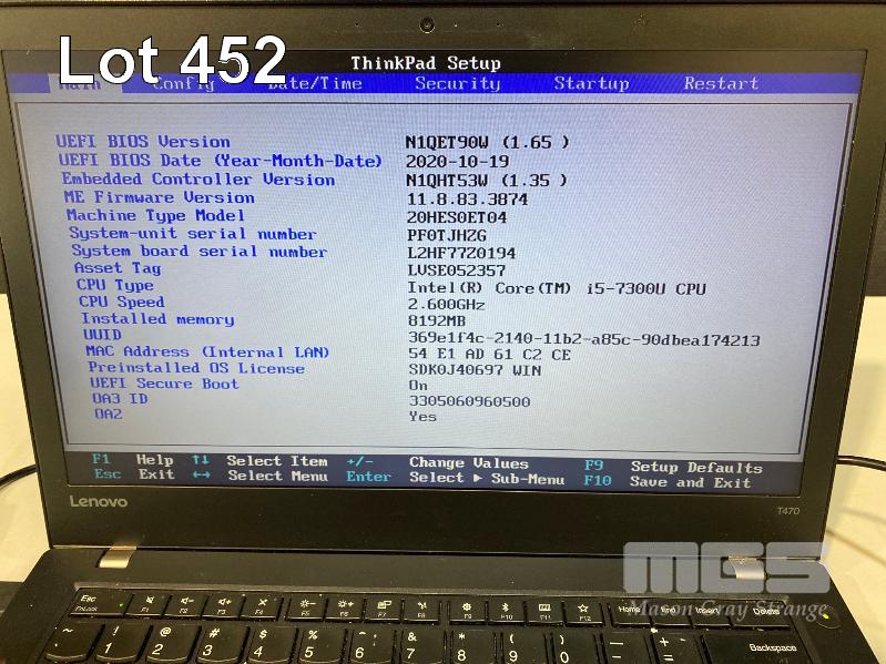 LAPTOP, LENOVO THINKPAD T470, TYPE 20HE, CORE i5 7300U (7TH GEN) @ 2.6GHz, 8GB DDR4 RAM, 256GB NVMe M.2 SSD, 14" WIDESCREEN (1366x768), INTEL HD VIDEO, Wi-Fi, BLUETOOTH, WINDOWS 10 PRO INSTALLED & POWER SUPPLY (NOTE: BATTERY NOT CHARGING, KEYBOARD FAULT - SOME KEYS NOT WORKING) S/N:PF0TJHZG