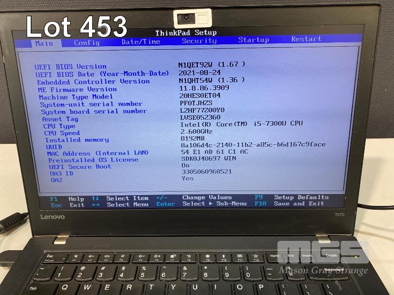 LAPTOP, LENOVO THINKPAD T470, TYPE 20HE, CORE i5 7300U (7TH GEN) @ 2.6GHz, 8GB DDR4 RAM, 256GB NVMe M.2 SSD, 14" WIDESCREEN (1366x768), INTEL HD VIDEO, Wi-Fi, BLUETOOTH, WINDOWS 10 PRO INSTALLED & POWER SUPPLY (NOTE: BATTERY NOT CHARGING) S/N:PF0TJHZS