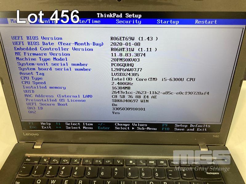 LAPTOP, LENOVO THINKPAD T460, TYPE 20FM, CORE i5 6300U (6TH GEN) @ 2.4GHz, 16GB DDR3 RAM, 275GB SSD, 14" WIDESCREEN (1920x1080), INTEL HD VIDEO, Wi-Fi, BLUETOOTH, WINDOWS 10 PRO INSTALLED & POWER SUPPLY (NOTE: MARKS ON SCREEN) S/N:PC0GQUHQ