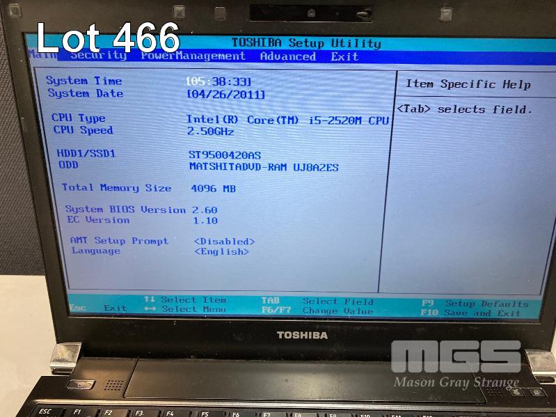 LAPTOP, TOSHIBA PORTEGE R830, CORE i5 2520M (2ND GEN) @ 2.5GHz, 4GB DDR3 RAM, 500GB SATA HDD, DVD-RW, 13.3" WIDESCREEN & POWER SUPPLY S/N:4B136090H