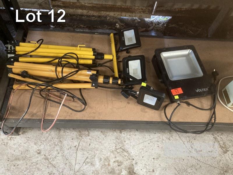 2 x LED FLOOD LIGHTS ON STAND, 20w & VOLTEX LED FLOOD LIGHT, 72w