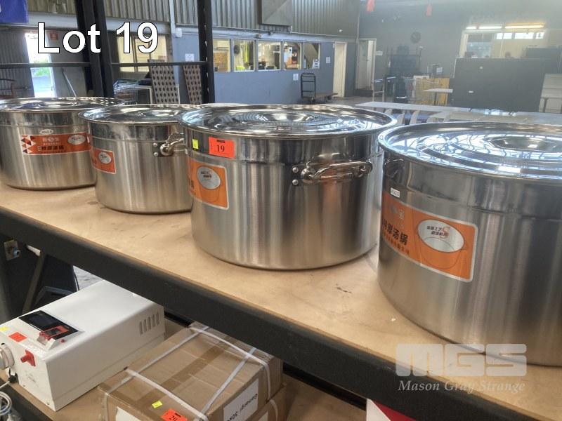 4 x STAINLESS STEEL STOCK POTS, 40 & 45cm