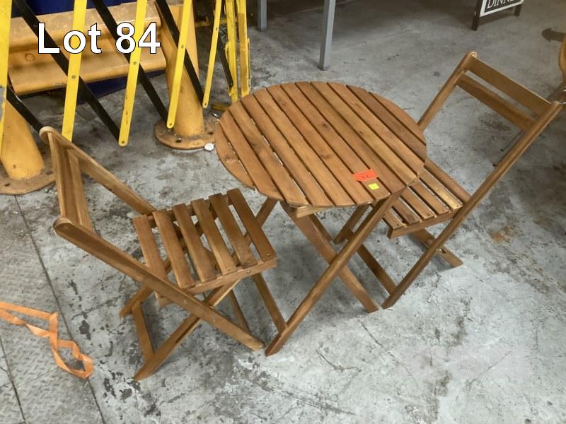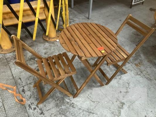 4 x 3 PIECE FOLDING OUTDOOR SETTINGS, 60cm DIAMETER, TIMBER SLAT