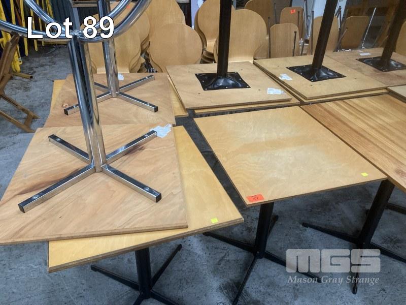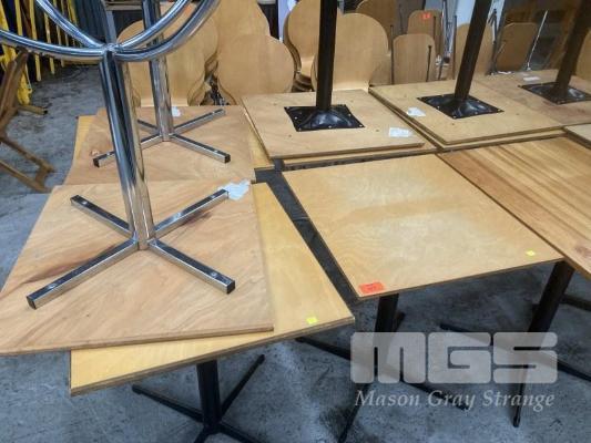 11 x CAFE TABLES, 66 x 60cm, TIMBER TOP, PEDESTAL BASE
