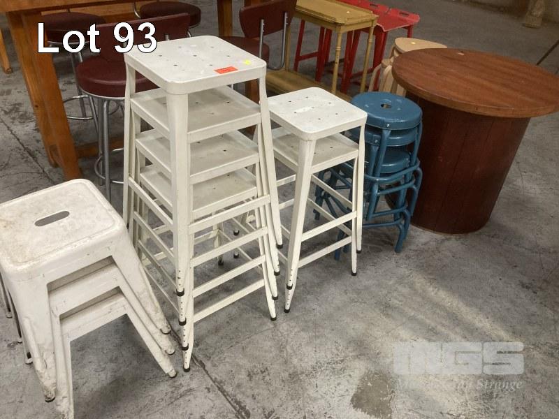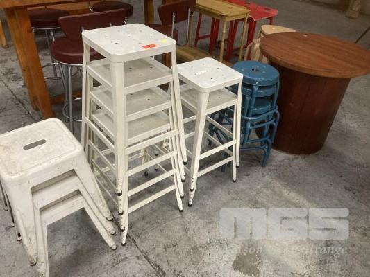 13 x ASSORTED STOOLS & ROUND TABLE