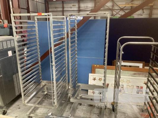 2 x ASSORTED STAINLESS STEEL COMBI OVEN TROLLEYS, 650 x 540mm, 19 TIER & 420 x 520mm, 20 TIER