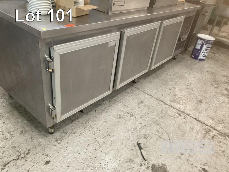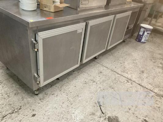 COUNTER CHEFS FRIDGE, 266 x 85cm 3 DOOR, STAINLESS STEEL CASED, 240V