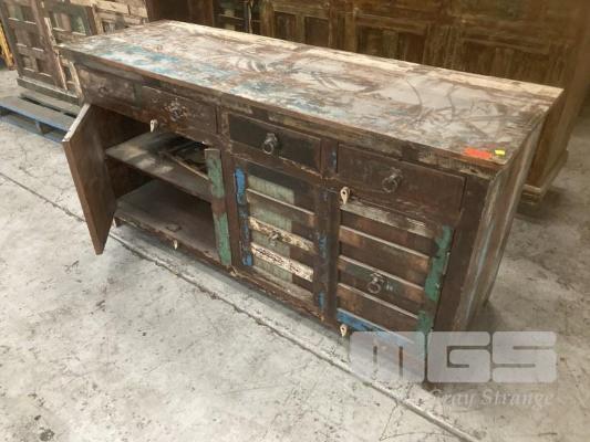 RUSTIC TIMBER BUFFET, 180cm, 4 DOOR/ 4 DRAWER, ( 1 x DOOR DAMAGED)