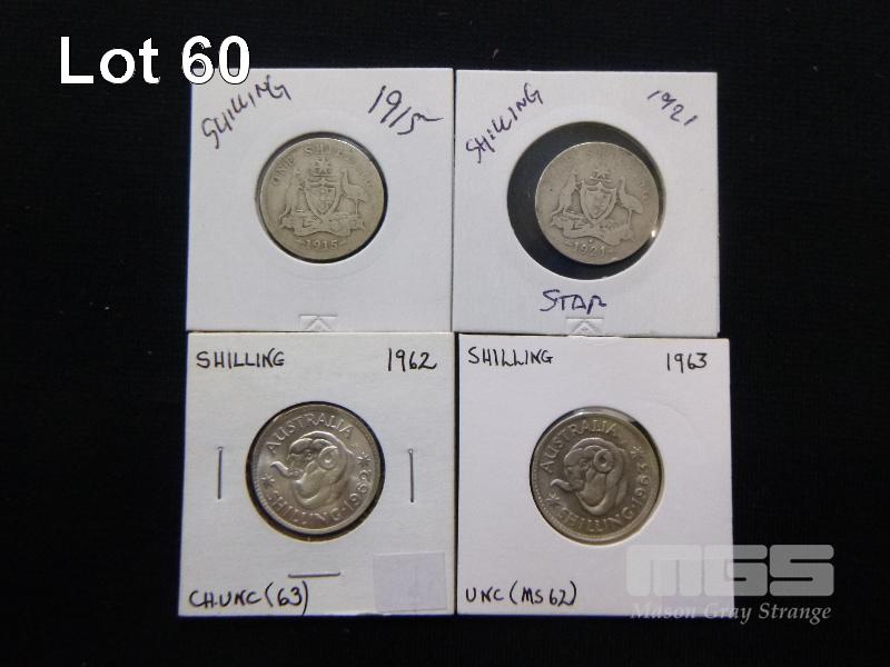 4 X AUSTRALIA SHILLINGS, INC; 1915, 1921, 1962, 1963