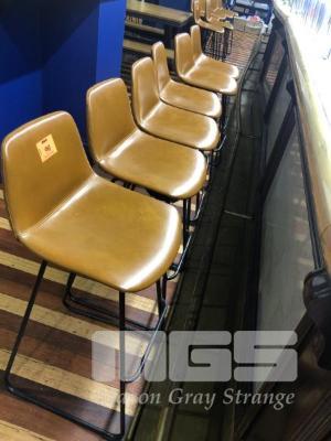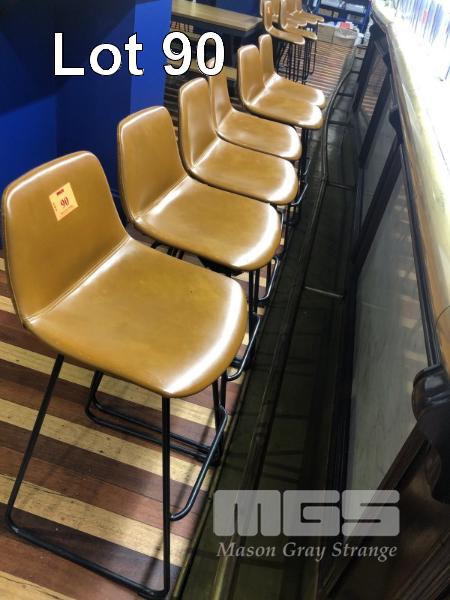 6 x BROWN VINYL BAR STOOLS WITH BACKREST, STEEL FRAME